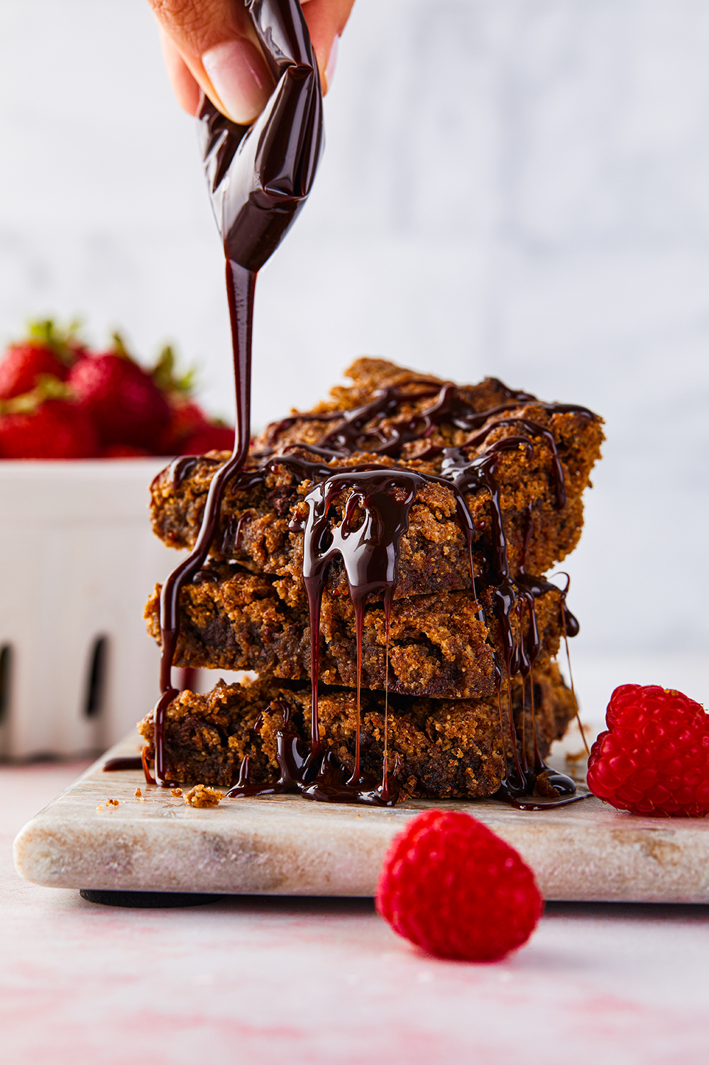 These almond butter brownies are totally addicting and make the perfect dessert for Valentine’s Day! They are free of flour, refined sugar, dairy and eggs. I adapted the recipe from Vani Hari of The Food Babe. I absolute love her blog and her passion for health. In this recipe, I used monkfruit sweetener which cuts down on the sugar and carbs, and won’t spike up blood sugar levels. The brownies will satisfy even the pickiest eaters. They are gooey and so delicious. If you feel like getting fancy, serve the brownies with raspberries and drizzle with chocolate syrup.